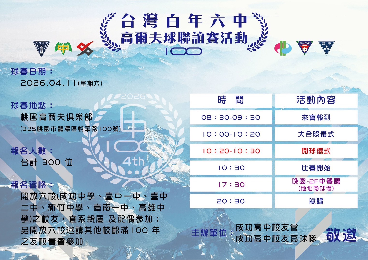 2026-04-07台灣百年六中高球聯誼賽, 即將於4/11(六)桃園球場舉行